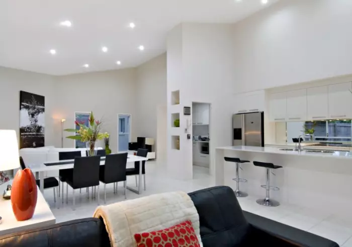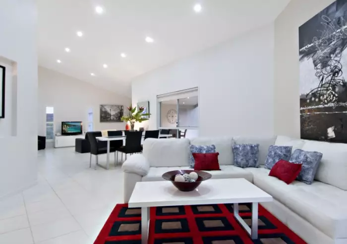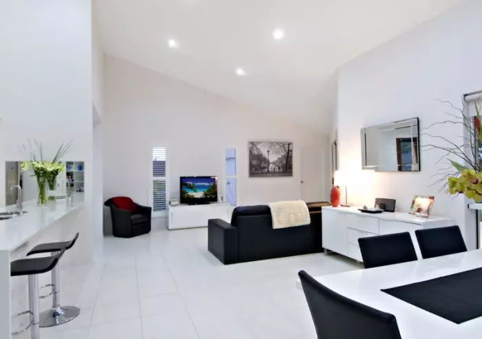 Accommodation - The open plan design opens onto a wide covered entertaining area inviting you to relax and enjoy the winter sunshine. A bright and airy home with generous space and tall raked ceilings throughout the living areas. The kitchen is a beautiful fusion of stone, steel and mirrored glass. The main bedroom combines an en-suite, large robes and retreat. There are three other bedrooms plus a study nook.