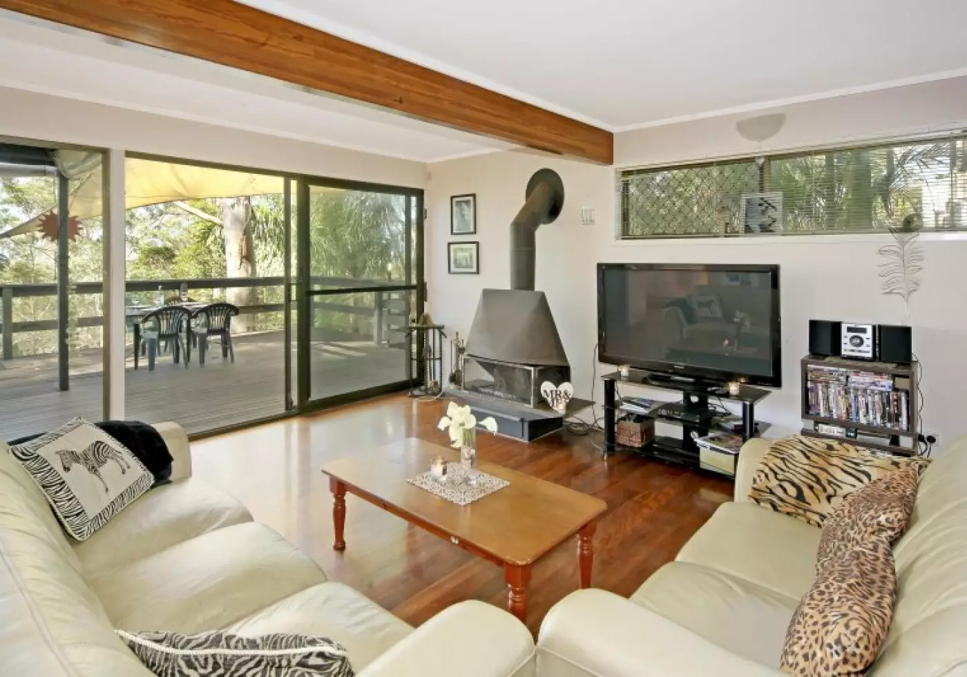 Features - Beautiful timber floor boards, three separate outdoor decks and a combustion fireplace in the main living area provides a feeling of warmth and comfort, integrating with the lush green leafy surrounds. The back yard has no rear neighbours, and there is a large area for storage underneath the house.