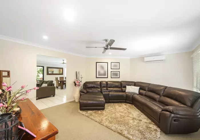 On the inside you will find 4 bedrooms including a generous main with air con, plantation shutters and 'His & Hers' walk in robes, 2 bathrooms and double garaging. Separate formal and informal living areas provide room to move, while the spacious kitchen overlooks the family area and swimming pool, with easy access to the large alfresco entertaining area.