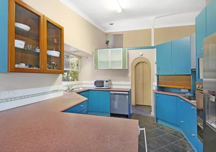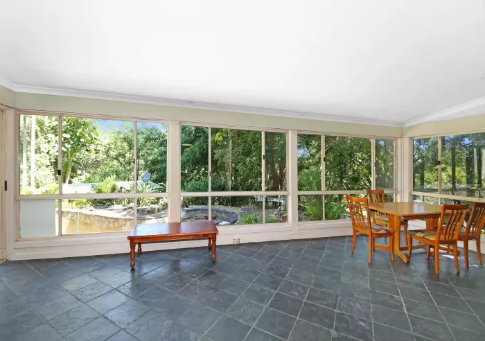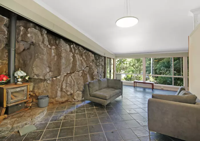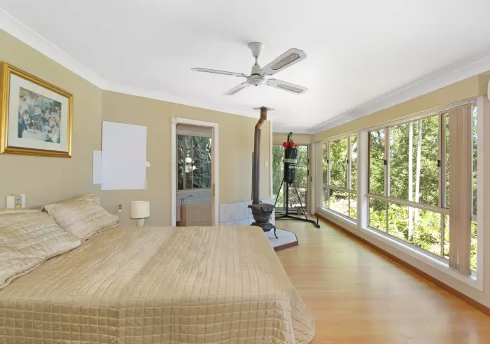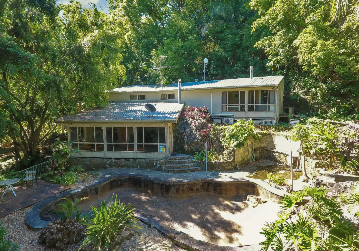 The property is situated at the end of a quiet and leafy cul de sac, with a paved driveway leading to the house. It is perched high on the hill on a south east facing block. Tree lined and secluded, the ultimate in private living