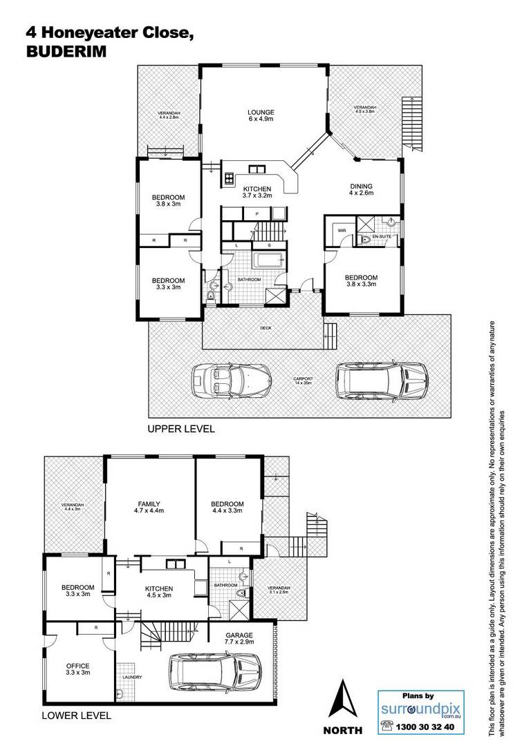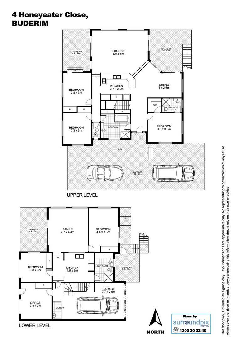Accommodation - Ideally set up for dual living, the home contains five bedrooms, office, three bathrooms, multiple living areas and parking for three cars in total. The main level has master bedroom and ensuite, two other bedrooms and main bathroom. The main kitchen, lounge and dining areas are roomy and light with enormous raked ceilings bounded by two separate north facing decks. Downstairs contains two spacious bedrooms, large kitchen, living, office/utility room, bathroom and laundry. There is also secure external entry to this area providing the ultimate in separate living zones.