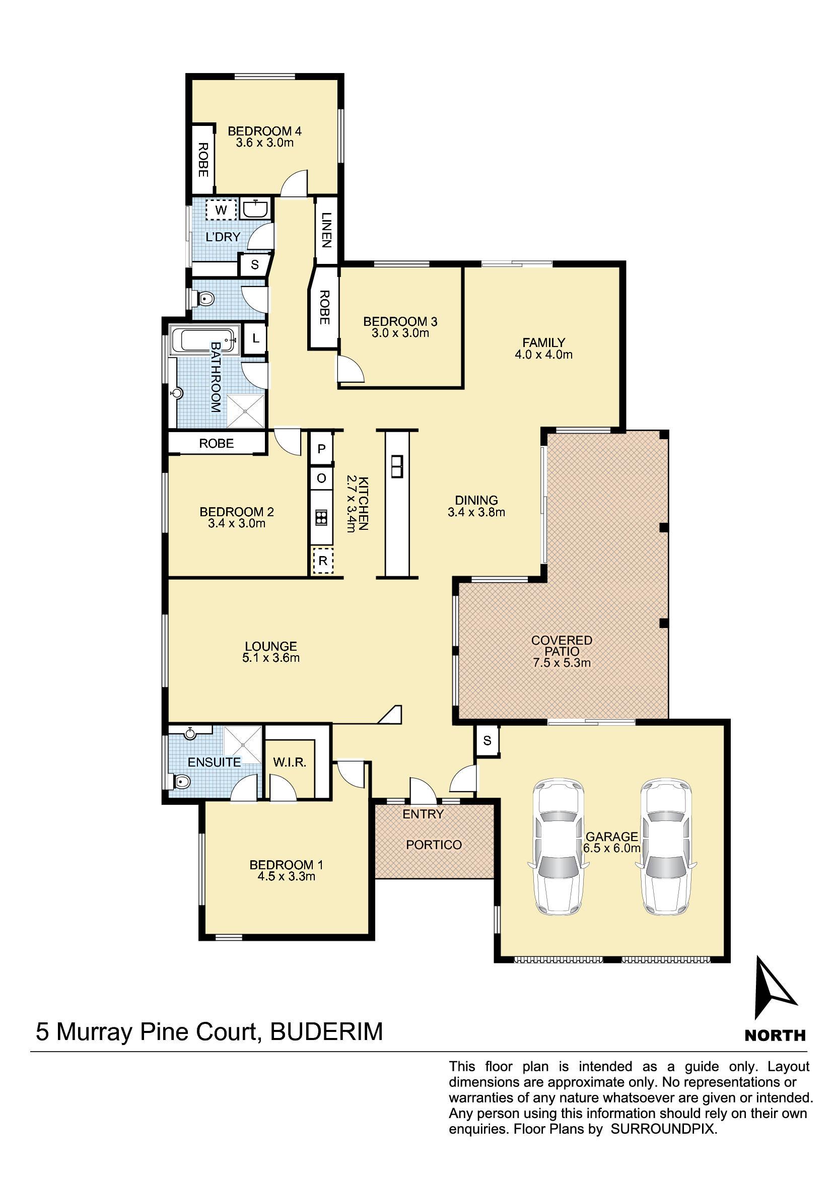 •The three remaining good-sized bedrooms have built in robes and share the adjacent main bathroom and separate toilet
