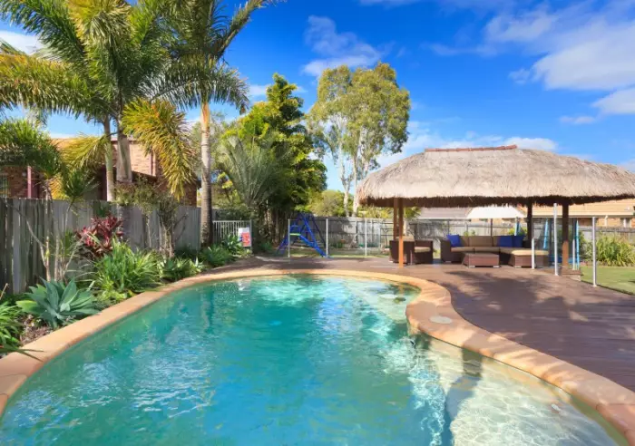 Accommodation - Set on a generous and fully fenced 760sqm and convenient to shops, transport, schools and the university, this 4 bedroom low set brick and tile home has ducted air conditioning and a big backyard providing endless opportunities for play for the children. A large covered patio area and in ground pool with a tropical Bali hut is a surprise feature - perfect for those who like to entertain. A great place to relax at the end of the day with a cool drink, or the perfect vantage point to watch the kids splash about or play. For the tradie or keen camper, an extra carport can be accessed by the drive through double lock up garage - perfect for the work trailer, campervan or tinnie.