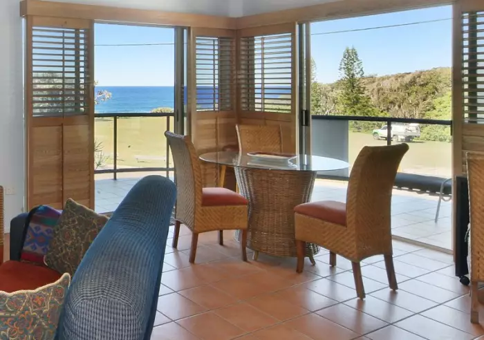 The apartment is being sold with tasteful modern furnishings and fixtures that include quality timber shutter doors.