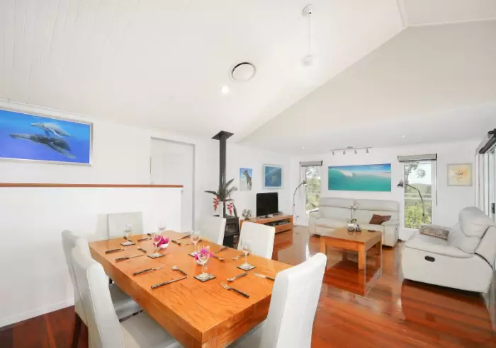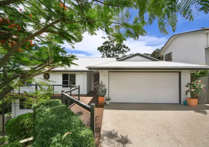 Lifestyle - Instantly inviting with a warm and comforting ambiance, this immaculate home offers a relaxed family lifestyle. wide doors open from the living area to a spacious covered entertaining deck offering magnificent views of the pool, sun drenched gardens, lawn and the leafy beyond to Mt Coolum.