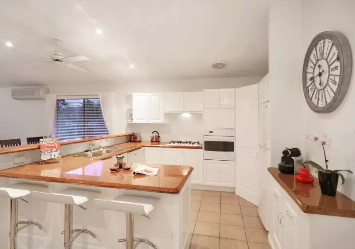 Accommodation - Four good size bedrooms, two bathrooms and multiple living zones over two levels allow for space and privacy for family and friends. Open plan main lounge, dining and family room on the entry level are spacious and the well-appointed kitchen is a pleasure for entertaining. Downstairs is a large media room, fourth bedroom and toilet and powder room, perfect for guests to enjoy their own space.