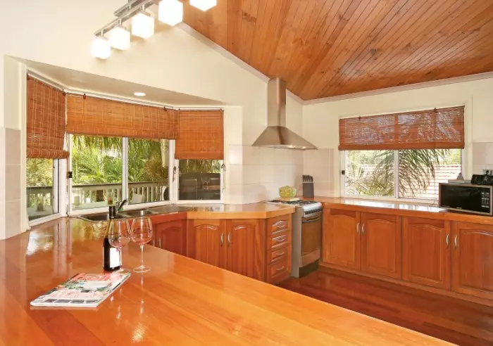 This solid high-set rendered block and Blue board construction is in good order and is surrounded by well established gardens beside a large Sunny pool and poolside cabana with its own jetty.