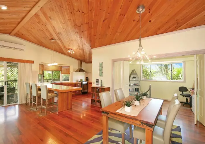 As you move upstairs the wide expansive living area immediately impresses you with and elevated lounge area overlooking the separate dining and kitchen. The central skylight baths the room natural filtered sunlight and enhances the relaxed mood.