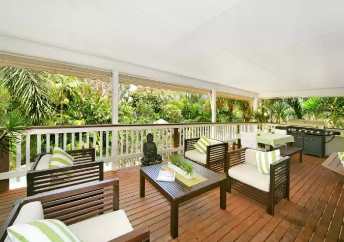 Accommodation - This modern beach home has an open plan design focus and provides two main areas of outdoor entertaining leading from both levels overlooking the lush garden and pool area.