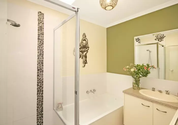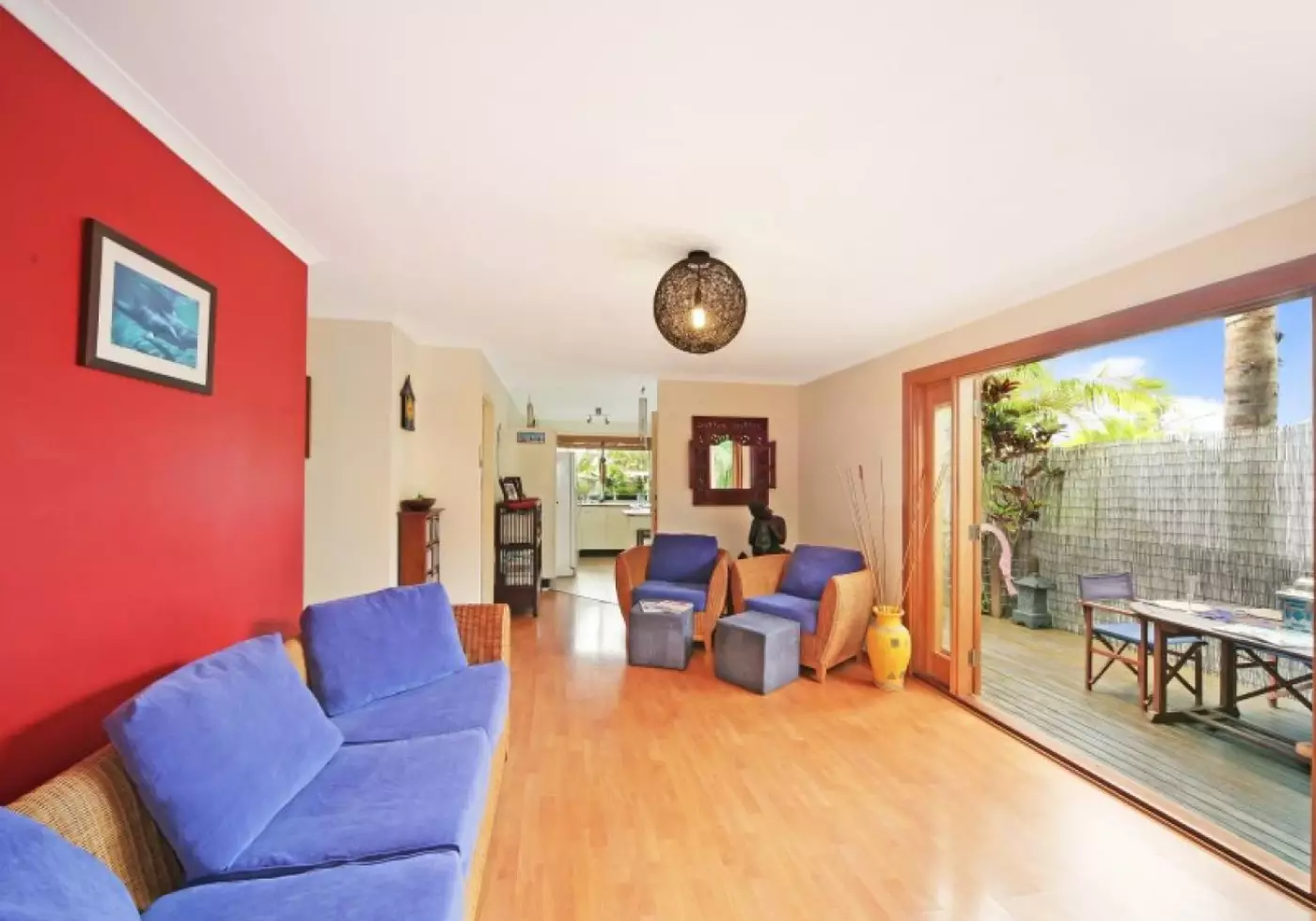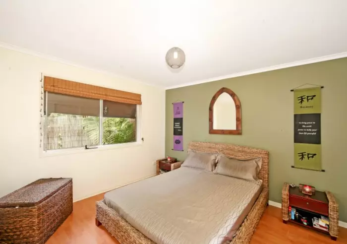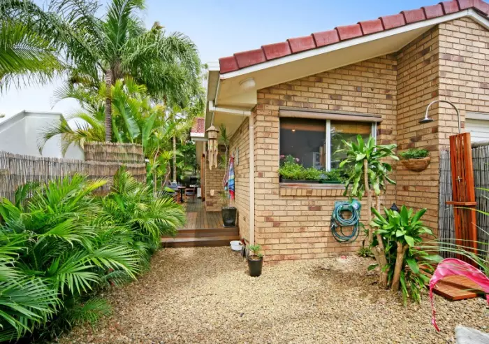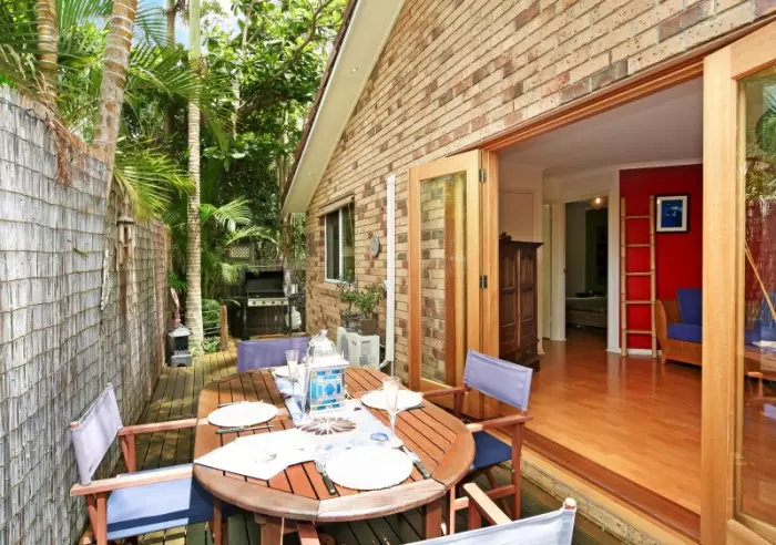 Accommodation - The outdoor space flows from the secure gate entryway through a pebbled courtyard with tropical gardens to the spacious raised timber deck. The interior space with open plan dining/living area and adjoining kitchen wraps around the outdoor space. With single door and large double French doors connecting both spaces there are great entertainment possibilities. The kitchen has ample cupboards and bench top space with a very large fridge space. The queen size master bedroom and the double size second bedroom both have built-in robes. The bathroom has both shower stall and bathtub.