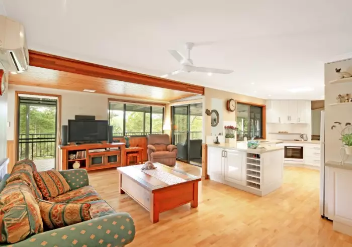 Features the property is fully fenced with a sweeping in and out driveway accessed by two secure remote controlled gates. Drive straight in the gates, right into the double garage and remotely close the world off behind you. Your dogs can have the run of the entire acreage or be secured in the front yard or just around the house. There is an extra carport up top for the camper trailer or weekend roadster and around the side the tradesman will smile. Big, high covered area for the work truck and trailer is fully concreted. Adjoining is a large workshop and storage so you can load all the gear up in no time. Your horse will be happy in a covered stall and a tack room is under the house. You just won't have to spend all day in the car doing the school run, to the shops or looking out for the horses. Best of all your kids will get out of their rooms and enjoy all that fun stuff you did when growing up