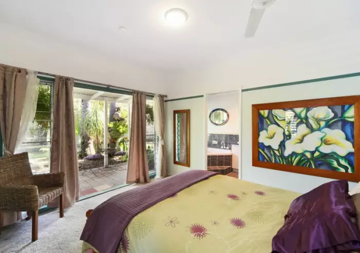 Effectively three bedrooms and a study with good separation of the second bedroom being next to the main bathroom. The master bedroom enjoys timber French doors onto the verandah and the large ensuite has a spa bath looking over the yard. Hallways provide lots of privacy between living and bedroom areas and there are generous storage areas.