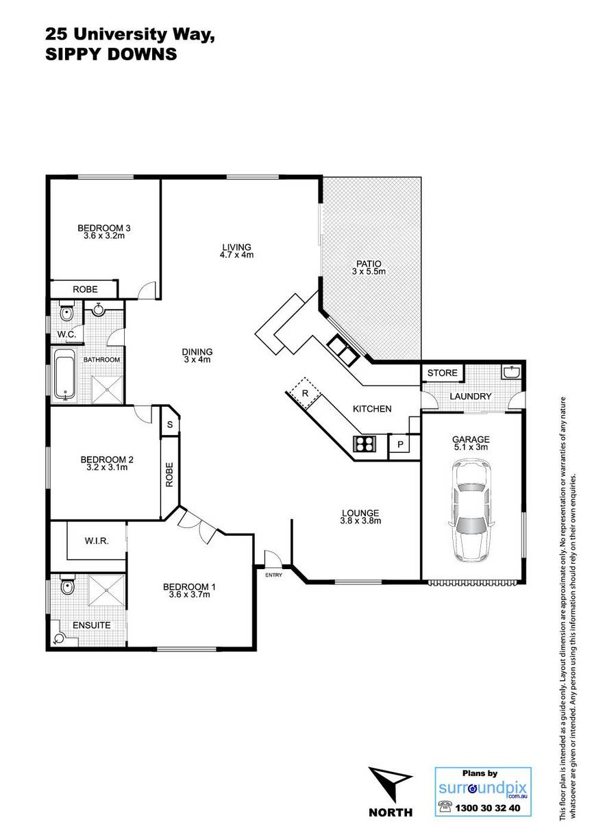 3 Beds 2 Baths 1 Cars 750 m2