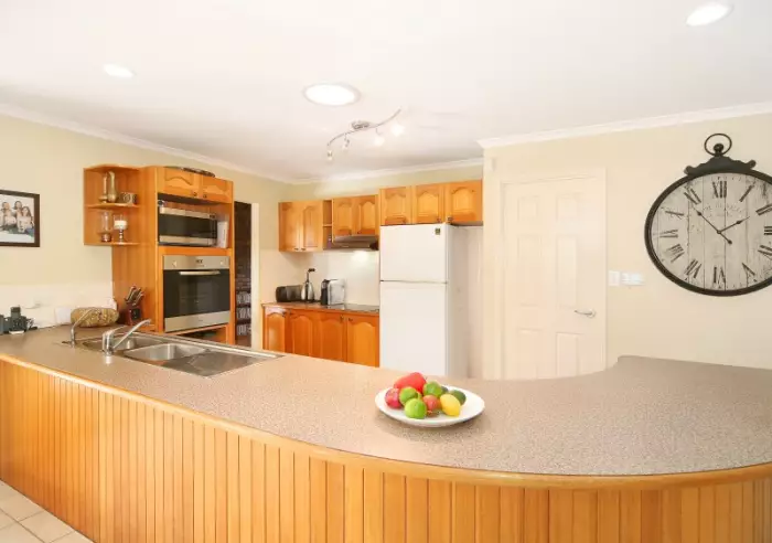 Accommodation - An elegant formal lounge with tall raked ceilings and stylish timber floors adjoins a separate dining area. The kitchen is well appointed with Tasmanian Oak cabinets and quality appliances, it overlooks an extra sized family room that opens onto a covered outdoor entertaining area and in-ground salt water pool where the children will splash away the hours over summer.
