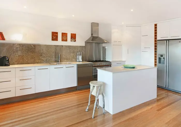 Features - Stunning timber floors throughout highlight the gorgeous galley style kitchen, well-appointed with stainless steel appliances and stone benches. Beautiful ranch sliders enhance the indoor outdoor lifestyle, with the large deck forming another huge living area. Side access allows for off street parking for multiple vehicles, and the garage provides large storage areas.
