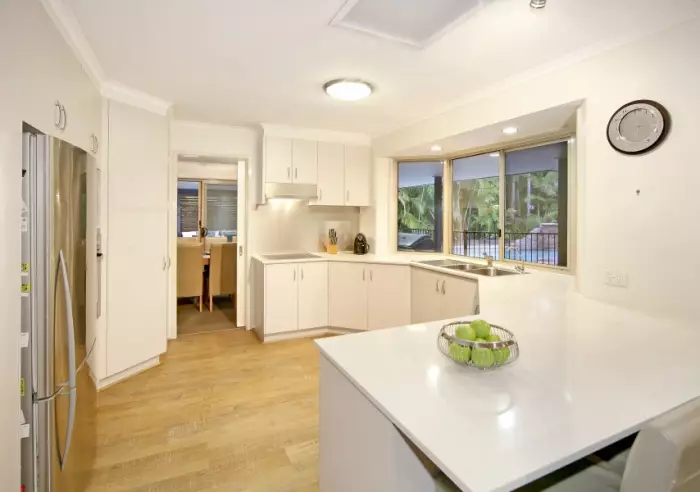 Accommodation - Recently renovated to a high standard, this family friendly home contains four large bedrooms, ensuite and main bathroom, office, separate formal and family living areas and beautiful outdoor entertaining overlooking the enormous resort style in ground pool. Raked ceilings and an inviting fireplace create a peaceful ambience and the well-appointed kitchen has stone benches, quality appliances and is perfectly situated between both living zones.