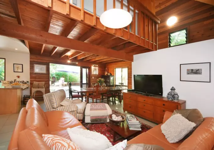 Accommodation - The residence is constructed in two pavilion style sections connected by a striking entrance foyer. This eco-friendly timber home has re-constituted granite floor tiles & wide timber entertaining decks.