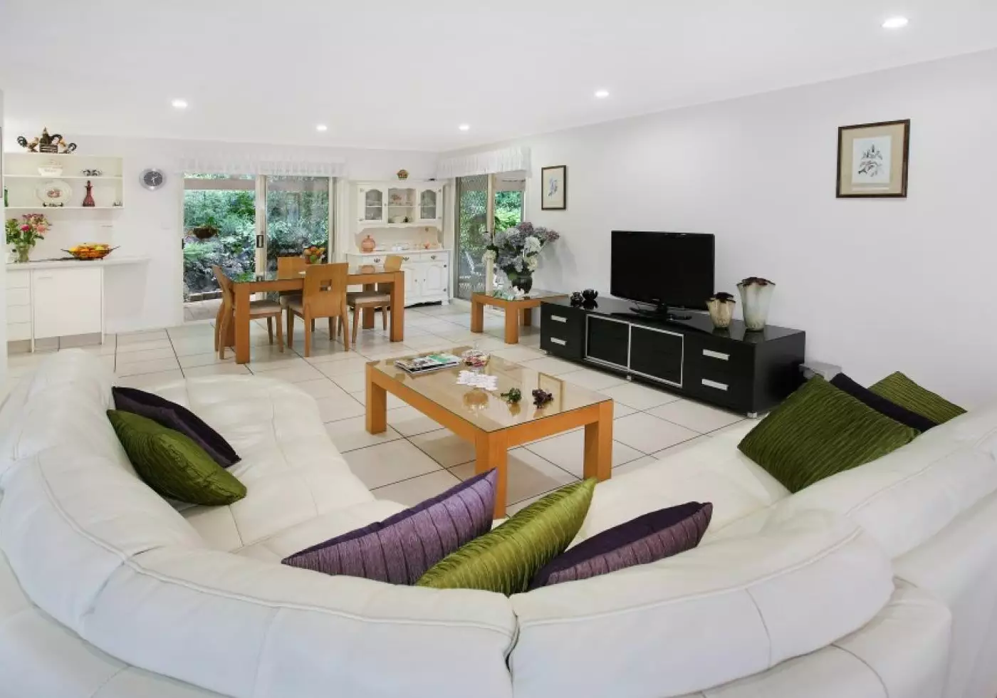 Accommodation - The spacious open plan living area includes a large kitchen featuring stone bench tops and a commercial grade gas cooker with a stainless steel canopy range-hood. There's sliding door access to both the front veranda overlooking the neat lawn the paved courtyard at the rear with its appealing rockery garden. Both of these areas are perfect for relaxing, entertaining and alfresco dining.