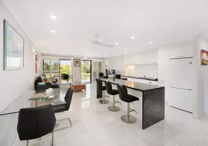 Accommodation - Both bedrooms have built in robes and great views as well as a small balcony off the main. The lounge, kitchen and dining area combine into one large living area opening to the generous balcony overlooking the parkland alongside Maroochy River. The kitchen has a wide island bench, dishwasher and good storage cupboards while the bathroom is two-way and there is a separate toilet.