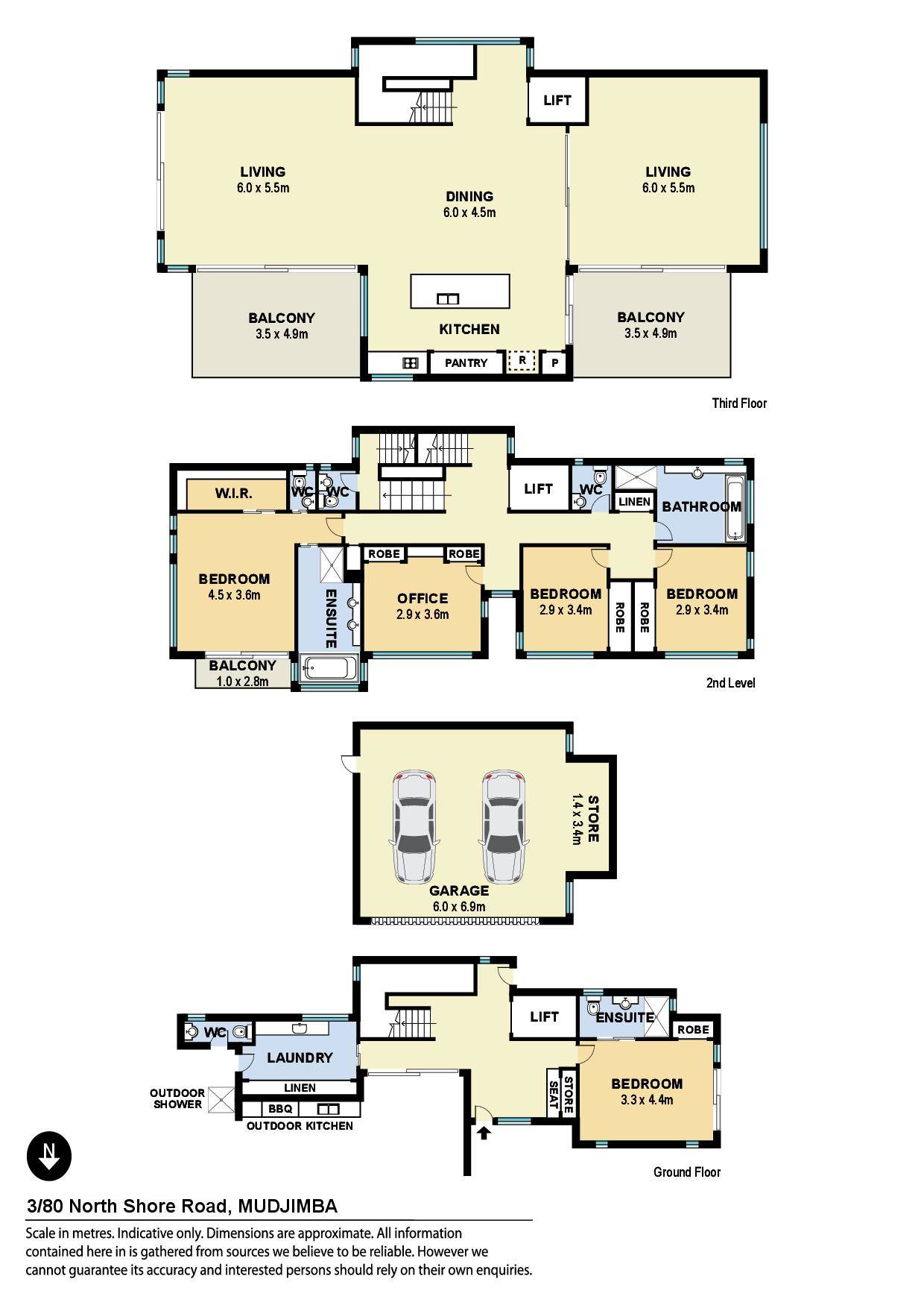 The well-considered open plan design of this three-storey home, captures the essence of a relaxed lifestyle that is possible, beside the beach. Each floor is with high ceilings, large windows that frame the outdoors and capture the ocean breezes and in turn offers much light to each living space. The kitchen, living and dining is an entertainer's dream with a huge chef styled kitchen and a 4m kitchen bench servery and dining room large enough to seat the whole extended family.