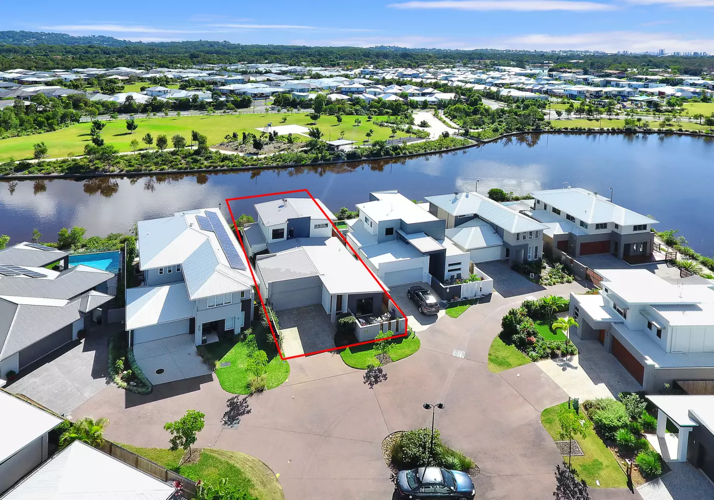 A desirable waterfront lifestyle is offered within this modern, very stylish home located in popular "Brightwater" estate. The home sits in an exclusive court with stunning views across the lake