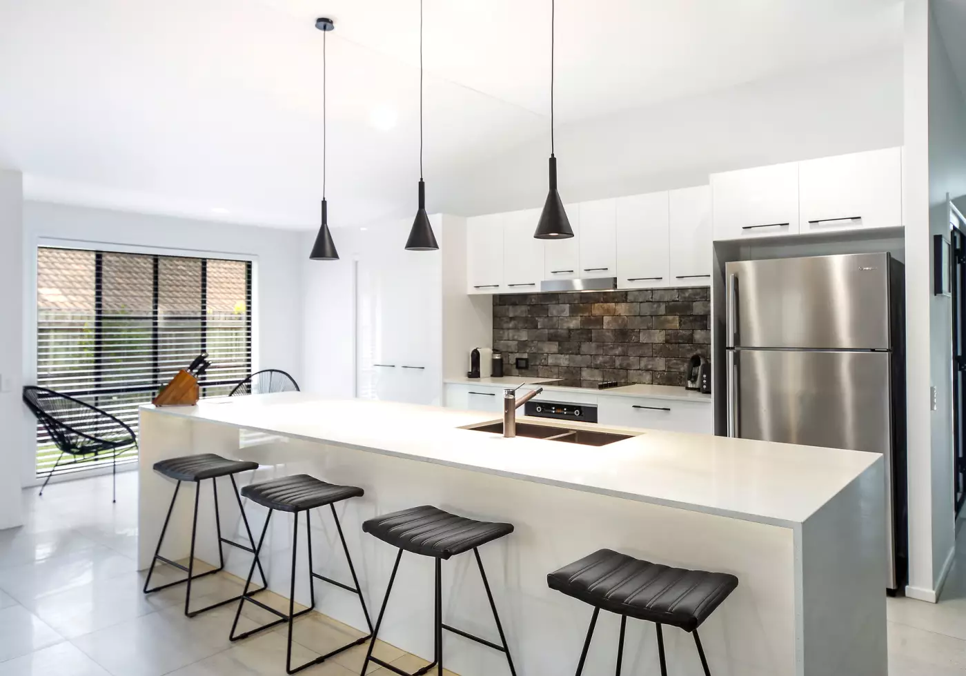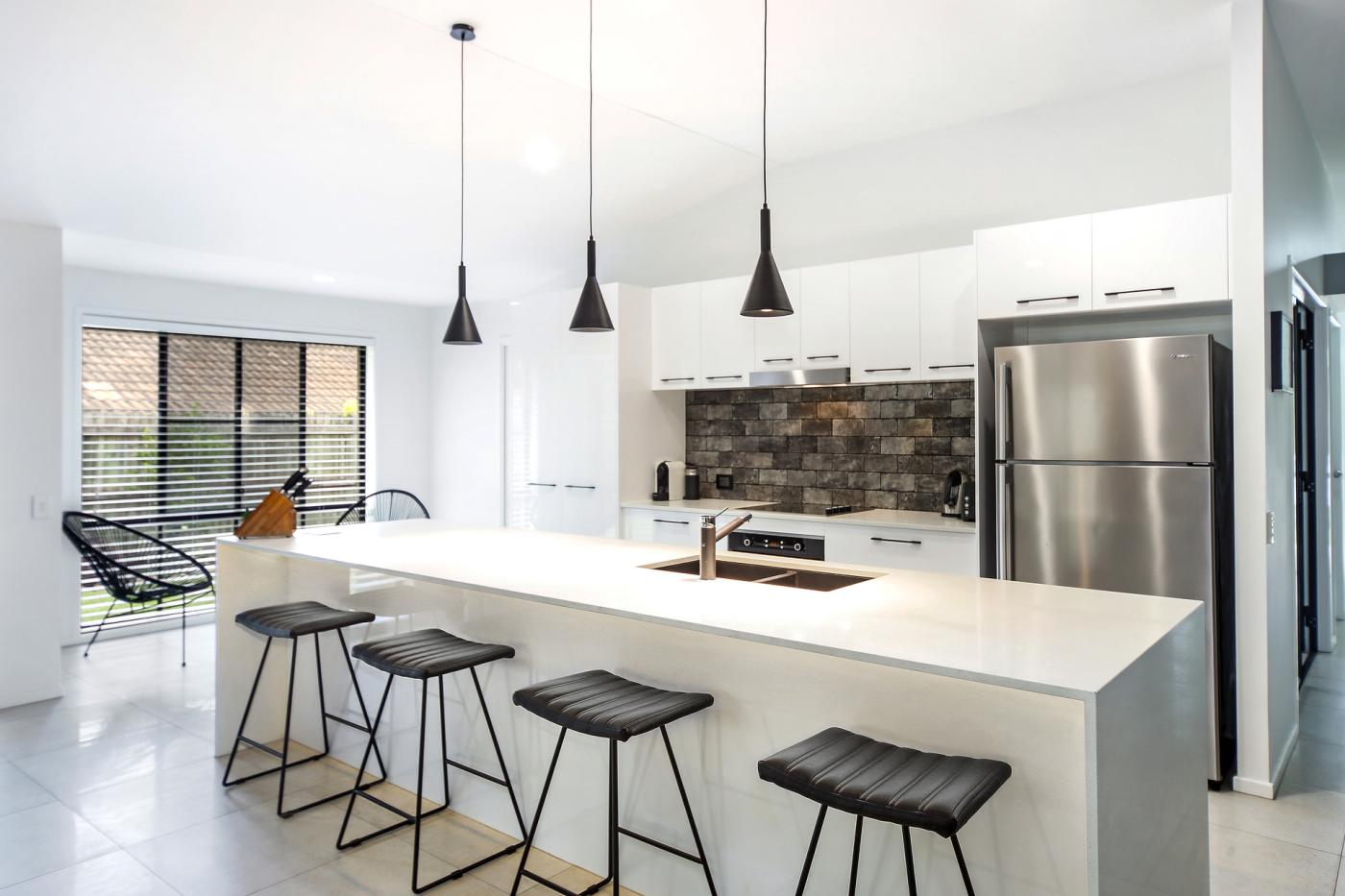 The galley style kitchen is absolutely stunning, with two pac cabinetry, high end tapware, quality appliances, double waterfall stone bench top and stylish feature tile splash back, which is also carried throughout the bathrooms and laundry.
