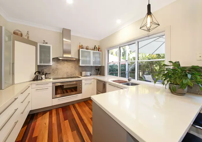 Cleverly designed for comfortable living and easy entertaining, the house provides 4 bedrooms, 2 bathrooms and garaging for 4 cars underneath. Separate family and formal living areas have a spacious feel with high ceilings, striking timber floors and gorgeous fret works a feature. The kitchen combines beauty and function with stone benches, superb marble splash backs, high quality appliances and simple access to both front and rear decks.