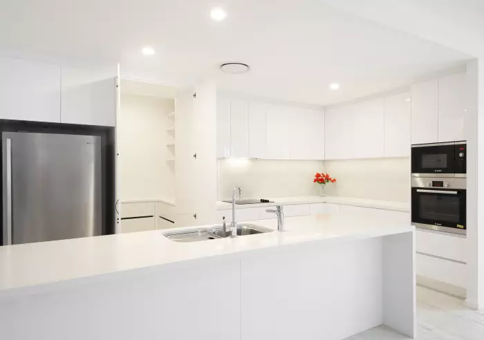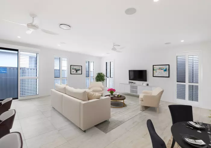 Stylish in design and finish, the open plan living area easily accommodates the lounge and dining areas, which leads out to the spacious patio. The kitchen offers substantial bench and cupboard space with soft-closing drawers and cupboards, instant hot water tap, Bosch appliances and integrated microwave and oven. Add to this a full butler's pantry for an extra touch of luxury, providing a better entertaining and dining experience.