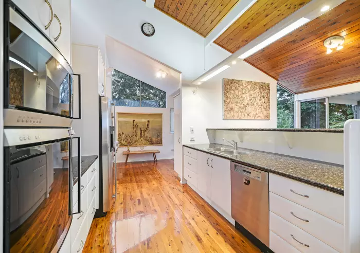 All bedrooms are king-sized with built-in robes, three which have direct access to the private backyard. The main bedroom offers additional space for a parents retreat. The home has been meticulously finished with excellent bathroom designs and finishes including marble and glass vanity tops, Chinchilla cypress pine flooring through living areas, raked timber soaring ceilings and automatic closing glass doors to assist with full split-system air-conditioned climate control.