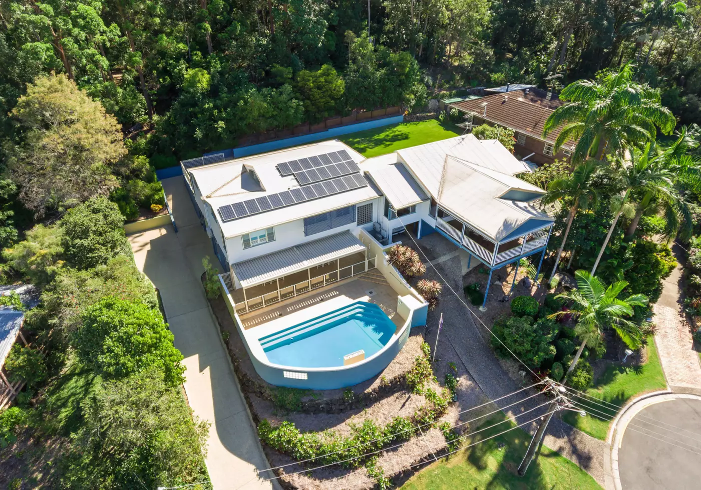 With every modern convenience in mind, the home is packed with features and fittings , with a floorplan designed to take advantage of separation of living, style, comfort and functionality. The house can be accessed via dual driveways and sits atop a 1618sqm block at the end of a private cul de sac with attractive terraced gardens below the large inground pool.