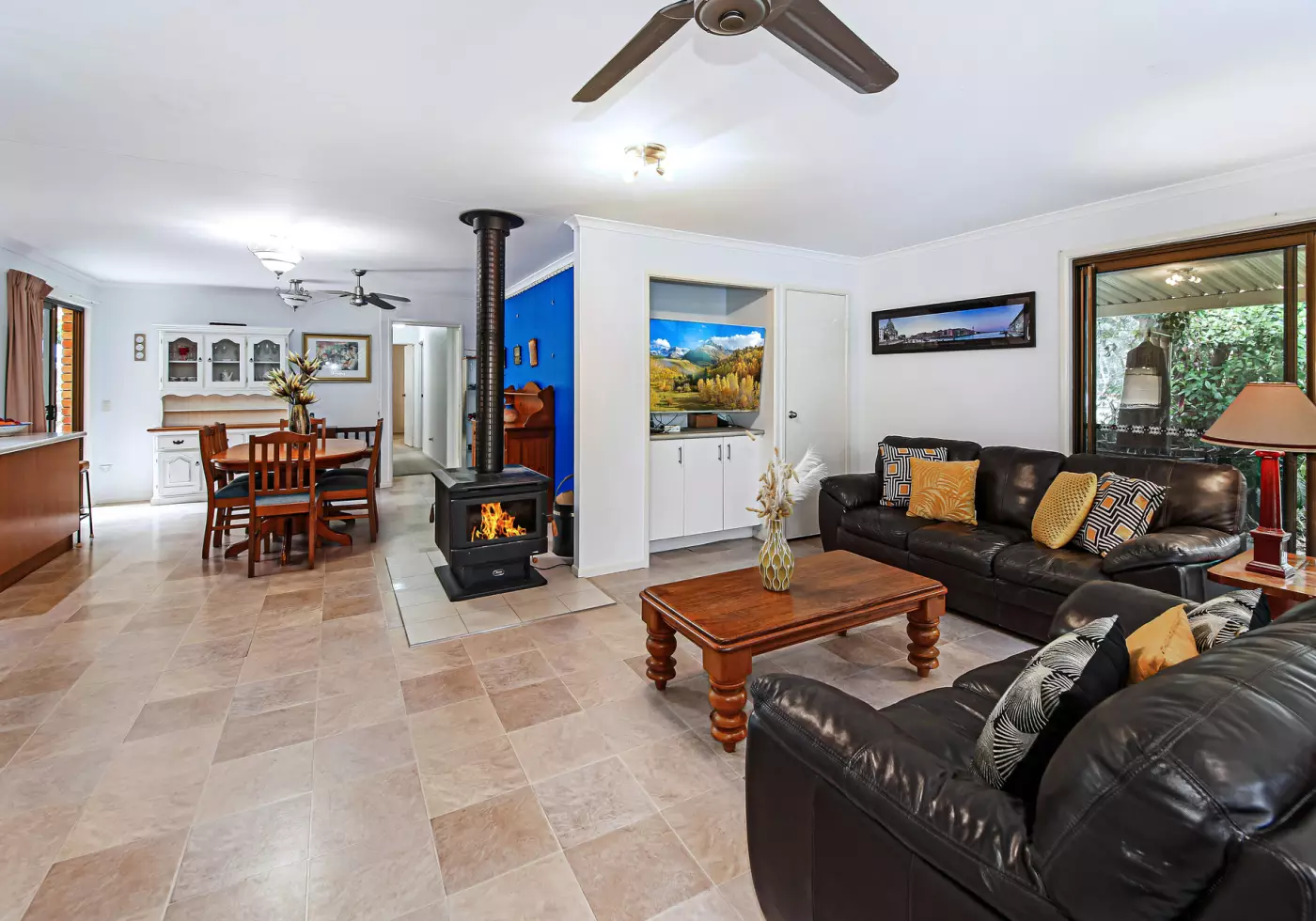 Inside this warm and welcoming home, you'll find a study for quiet contemplation or work-from-home convenience along with built-in robes offering ample storage. The inclusion of air conditioning ensures year-round comfort while the cosy wood fire heater adds an old-world charm to those cooler evenings.