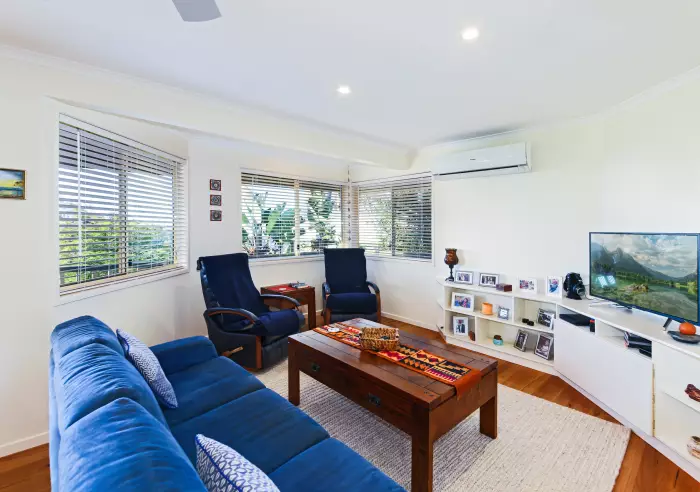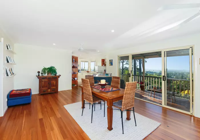 The beautiful open plan kitchen, living and dining area accentuates the feel and character of the solid blackbutt timbers floors, combining perfectly with the natural environment. The spacious everyday living area that flows through sliding doors to the north facing deck provides beautiful ocean and hinterland views. All three good sized bedrooms have built-in robes and all lead to the outside decks to capture the cool breezes & views. The main bathroom, ensuite & laundry have been tastefully renovated. Relax & entertain on the expansive rear deck which overlooks the well-established manicured gardens.