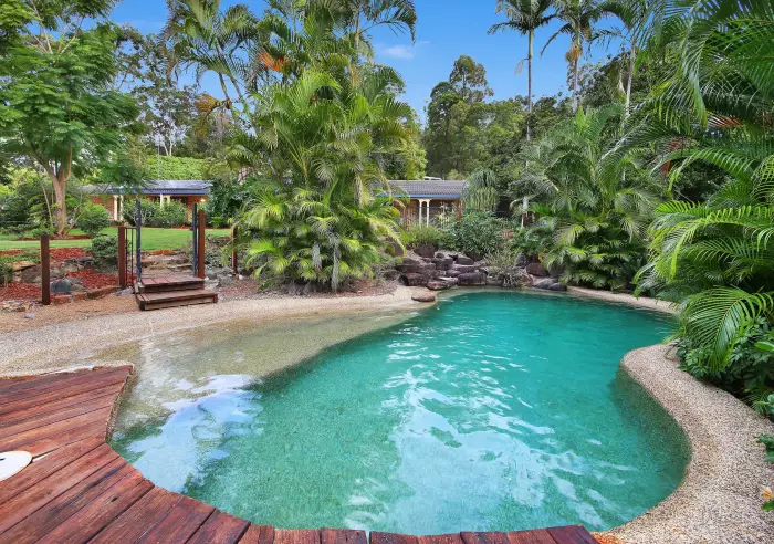 • The sparkling inground pool with beach area is private and set amongst beautiful well-established gardens