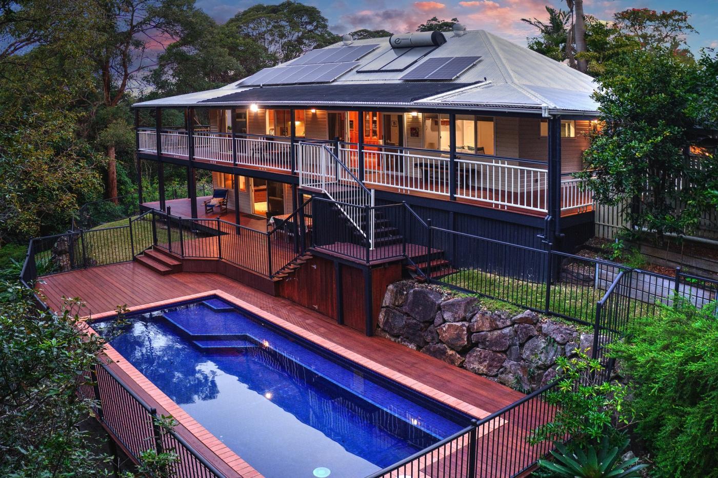 - Stunning pool and deck overlooking lush rainforest parkland