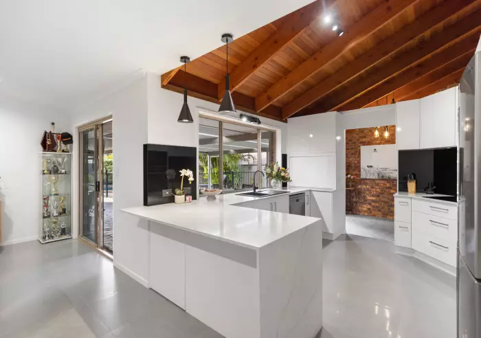 This single level brick home is equipped with four spacious bedrooms having the master located at the rear, two freshly renovated modern bathrooms, two separate living areas with racked timber ceilings, light-filled central kitchen, expansive outdoor entertaining area, separate laundry, and double lock up garage plus gated side access.