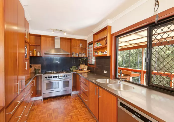 • The timber custom built kitchen has a 6 burner gas cook top, dishwasher and stainless steel bench tops with plenty of space for the chef of the house