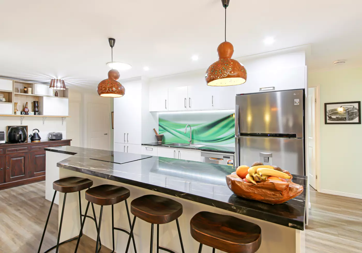 • Renovated kitchen with granite benchtops, glass splashback, plenty of bench space for the chef of the house and quality appliances.