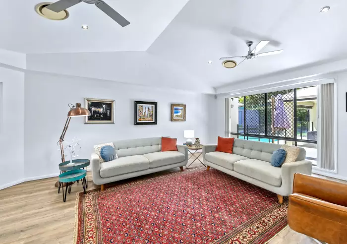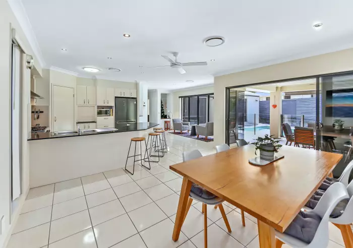 Entertaining is easy with the option of indoor and outdoor spaces to suit all occasions. The stylish kitchen features stone benchtops, breakfast bar, ample storage, 6 burner gas cooktop & 900mm oven. It sits adjacent to the spacious outdoor entertaining area which overlooks the sparkling solar heated pool. Perfect for those weekend BBQ's with friends & family.