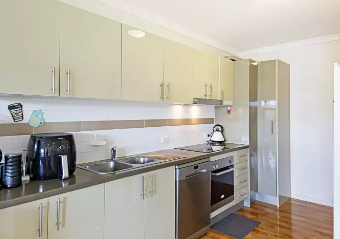 • Large kitchen includes stone bench tops, dishwasher with electric stove and rangehood