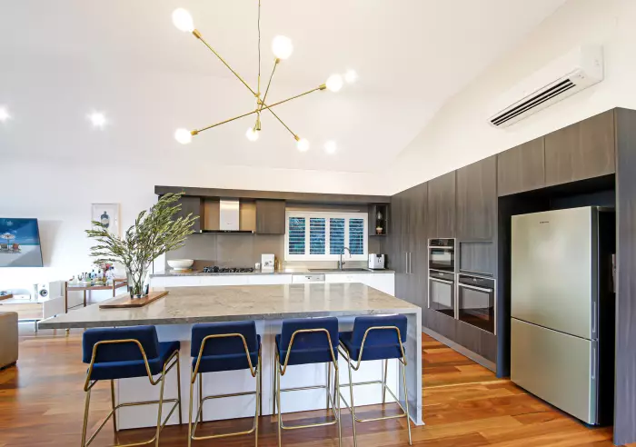 - Chef's quality kitchen packed with features including an immense natural stone island bench, integrated Miele dishwasher, Neff five burner gas cooktop, range hood and three, multi-oven systems. An abundance of soft closing drawers and cabinets, and a cocktail bar with wine fridges perfect for entertaining