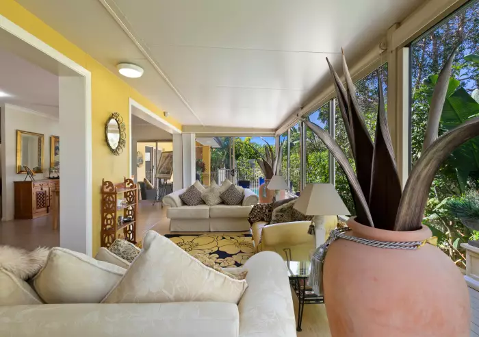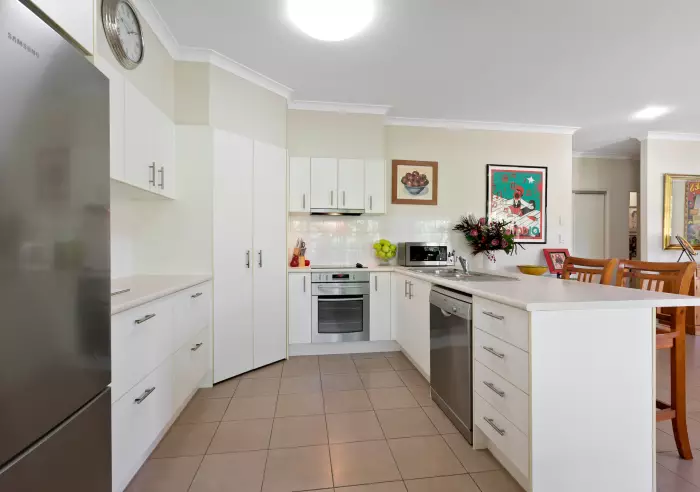 A small cul de sac on one side gives the feeling of space and privacy, along with an extension off the spacious kitchen with floor to ceiling glass windows to take in the bird life and easy care gardens. There is secure fencing and access gates leading to the deck and alfresco dining by the pool.
