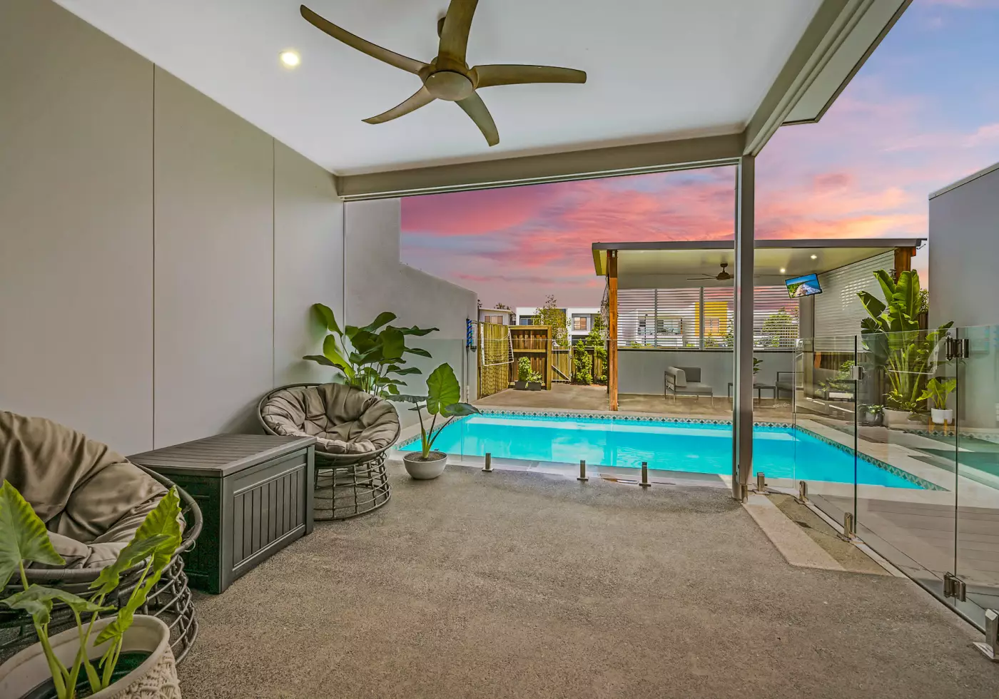 - Covered alfresco patio overlooking the pool / spa, with remote mood lighting