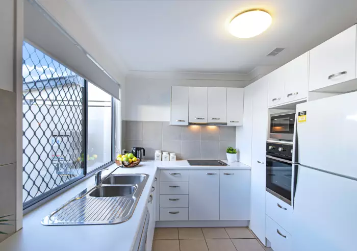 The modern kitchen, open plan living and dining flow effortlessly out to a private courtyard and covered patio. There's plenty of space for storage with a double lock-up garage plus, additional secure parking space onsite for a caravan or boat (subject to availability).