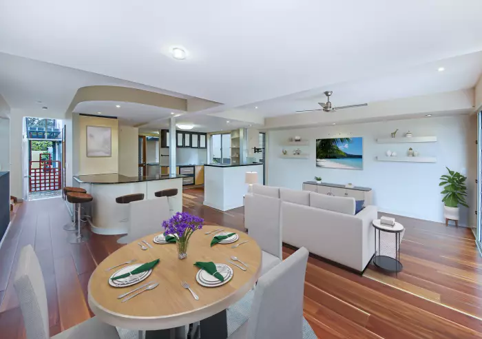 Architectural inspiration and design allows for the ultimate in bright, airy and open living. Three bedrooms, office or parents retreat and two bathrooms are cleverly positioned throughout this beautiful split level home to maximise personal space without isolation. Entertaining guests is a breeze, with the opulent kitchen forming the central hub of the home and allowing easy access to all five indoor/outdoor living zones.