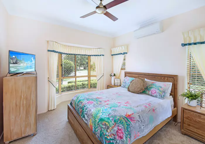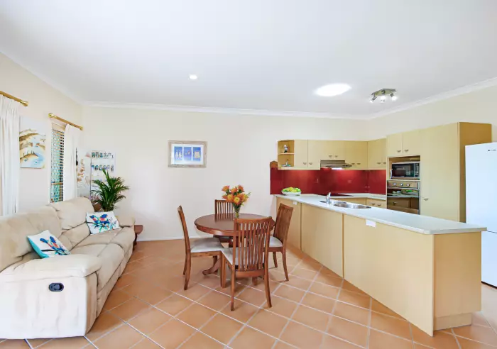 This lovely two bedroom villa is light-filled with high ceilings throughout giving the sense of space. Easy living is assured via open-plan design with water views and direct access to the private covered outdoor entertaining area, modern kitchen with ample cupboard and bench space. Comfort is guaranteed with gentle coastal breezes filtering throughout the home, supplemented by air conditioning and ceiling fans throughout.