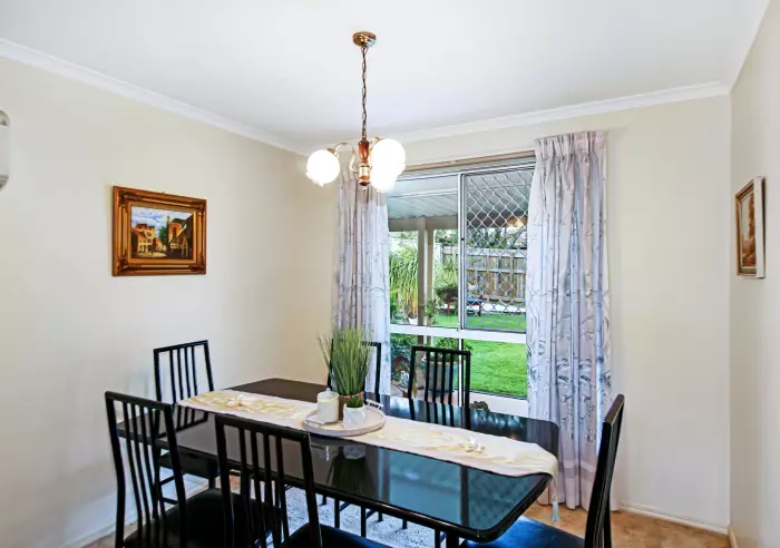 The interior layout comprising of three bedrooms and two bathrooms is centered around the living and dining spaces and well appointed kitchen. Opening through to the outdoors, the rear yard is framed by an established garden landscape with scope to add a pool. Privacy is assured with plenty of room for the kids and pets to play safely.