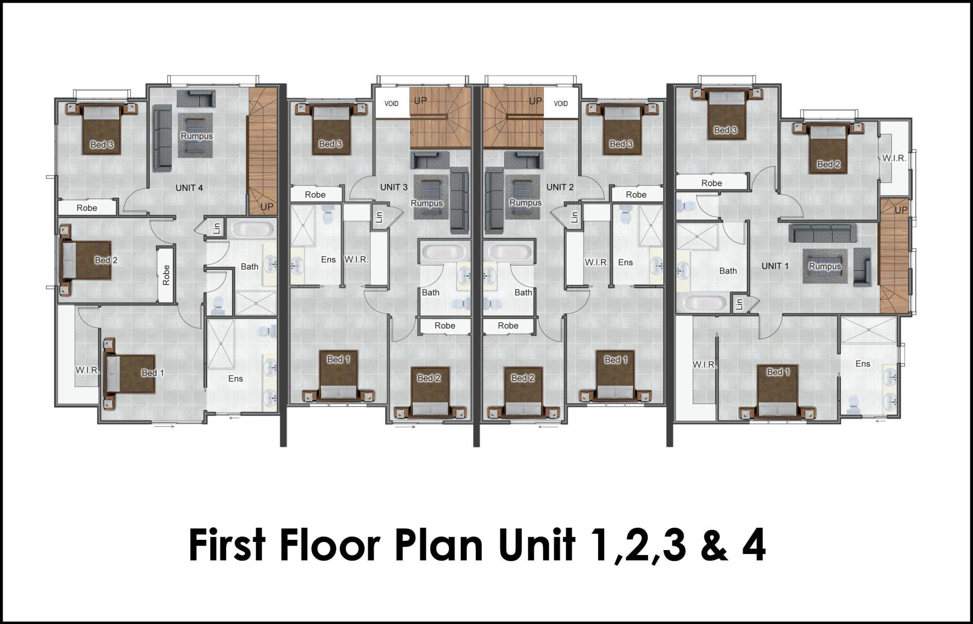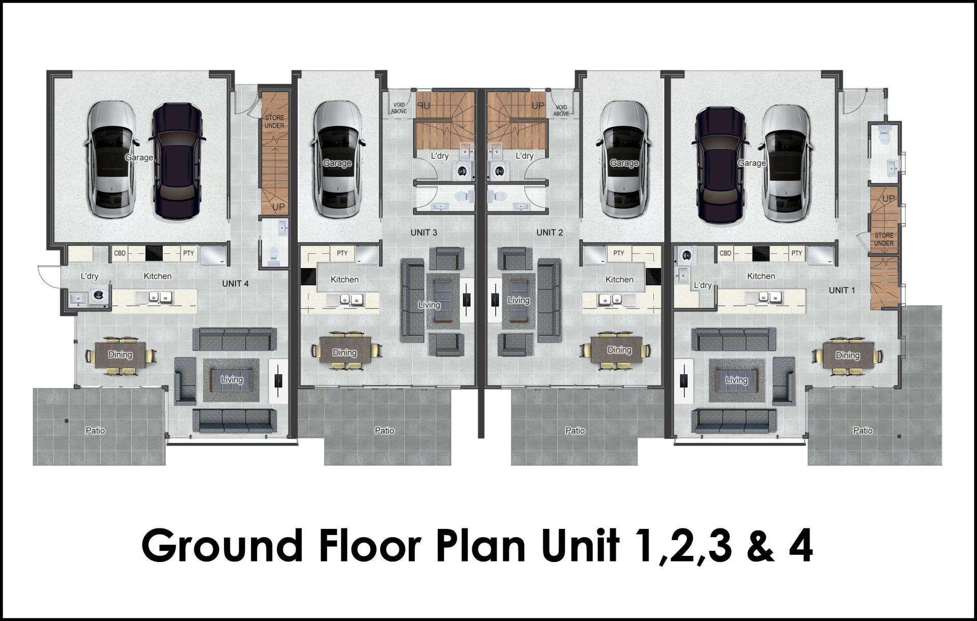 - Unit 4 is 3 bed 2 bath 2 car garage with 197sqm living