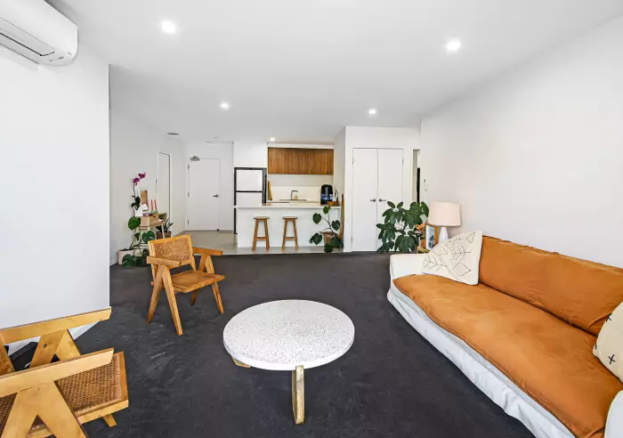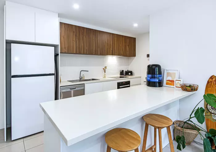 The kitchen is equipped with modern amenities, stylish finishes, stone bench-tops, soft-close cabinetry and plenty of space to cook and gather, the ultimate blend of convenience and accessibility.