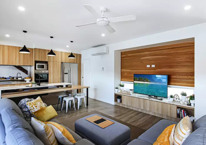 - Large air conditioned open plan living area