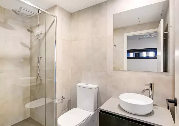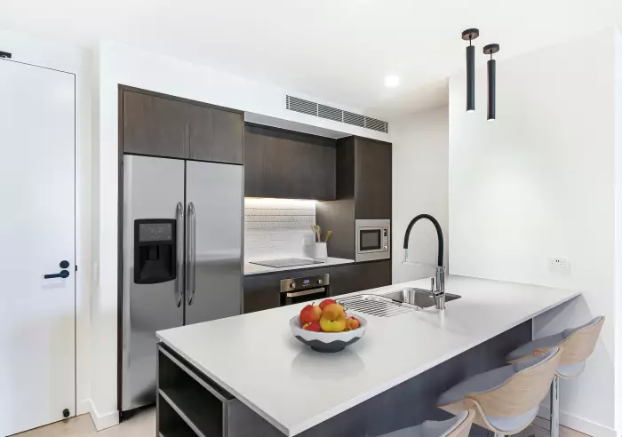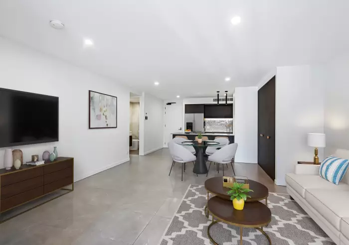 The bathrooms are equally luxurious, with reconstituted stone benchtops adding a touch of refinement. Every aspect of this apartment has been meticulously designed to provide a sense of luxury and elegance.